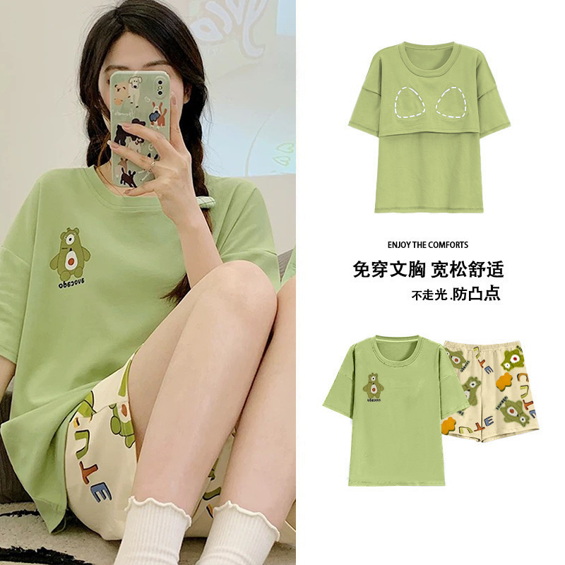 新品上市-買1送1!免穿bra冰絲家居睡衣,家居可外穿,解放女性束縛,免穿bra出門扔垃圾,一套就搞定!