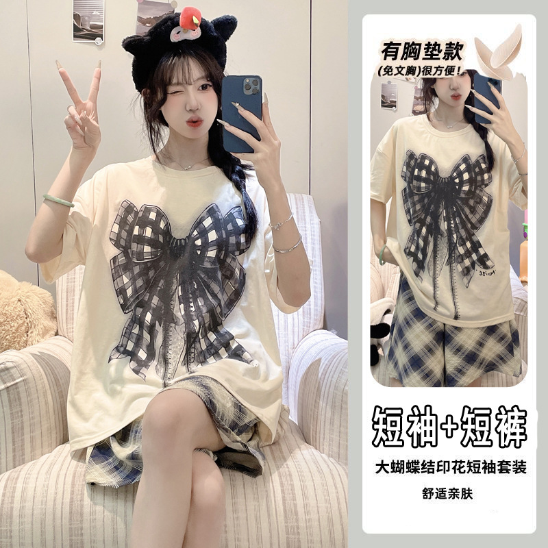 【大蝴蝶結】-短袖短褲帶胸墊